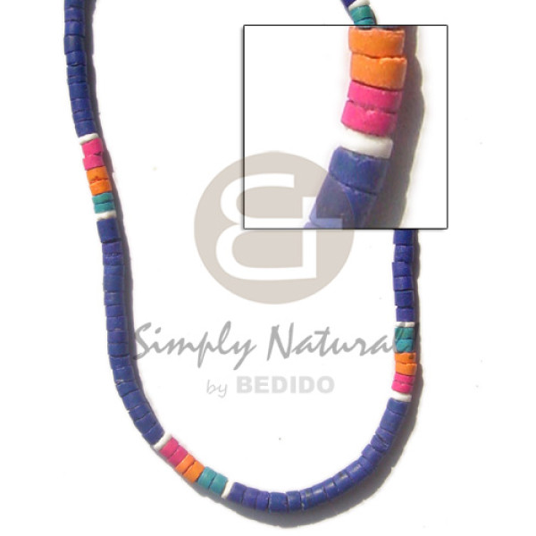 4-5 coconut heishi / royal blue / in pink / mango yellow / turq blue / in white shell..