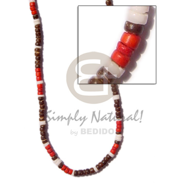 4-5 coconut Pokalet/nat brown/4-5 white clam heishi / 4-5 coconut Pukalet maroon..