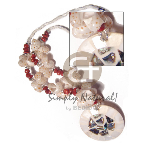 2 rows white/pastel pink wax cord faint pink turbo shell pendant (approx. 35mm - varying natural s..