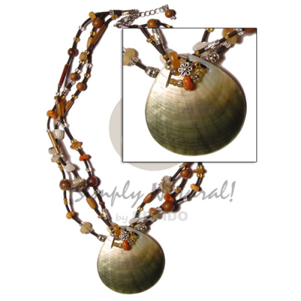 6 rows cell string blue gray/olive green combination glass beads accent and green turbo shell penda..