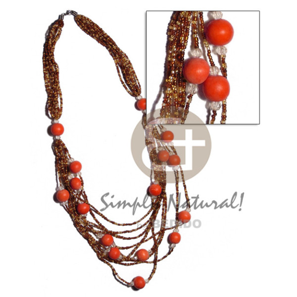 5 rows graduated multilayered golden brown glass beads 20mm round wood beads/pearl accent / oran..