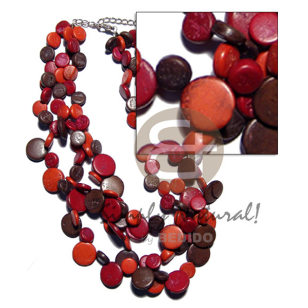 3 rows 10mm & 15mm coconut siderill / alternate (15"/16"17" / red /orange/brown combination..
