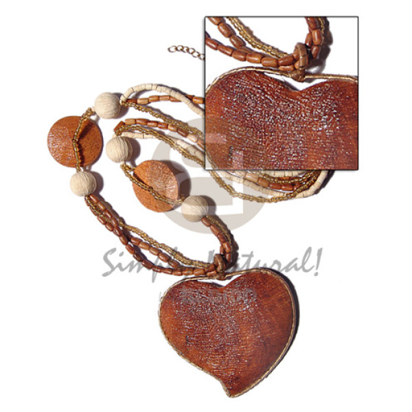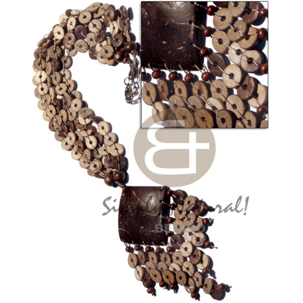 3 rows 10mm floating coconut tiger rings tassled 45mm diamond coconut nat. brown pendant dangling ..