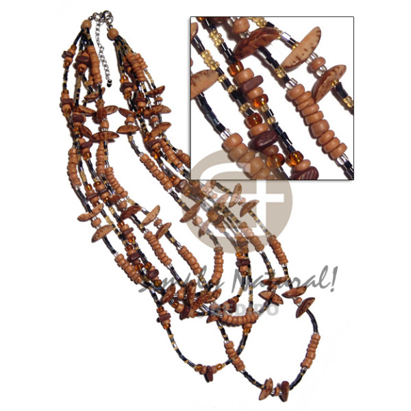 5 graduated rows ( 22in/20in/18in/17in/16in ) 4-5mm coconut Pokalet, cut beads, coconut sq. cut bur..