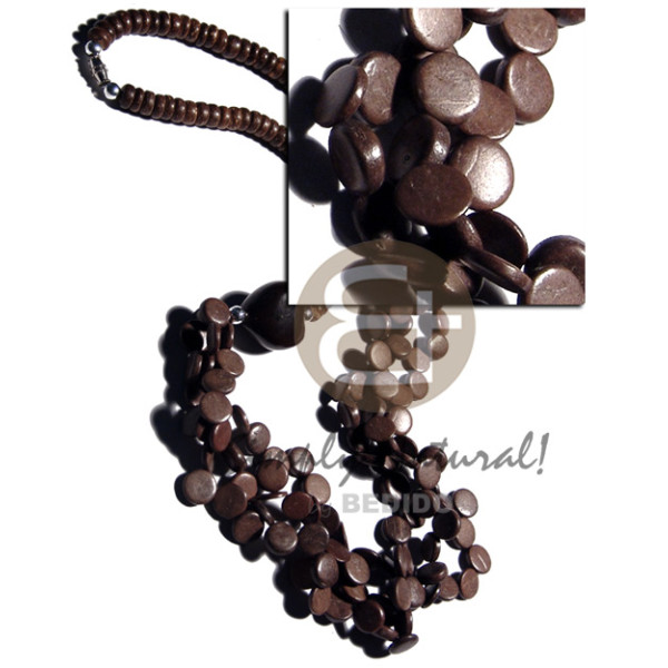 7-8mm coconut Pokalet. nat. brown 3 graduated rows dyed in subdued brown 10mm coconut sidedrill and..