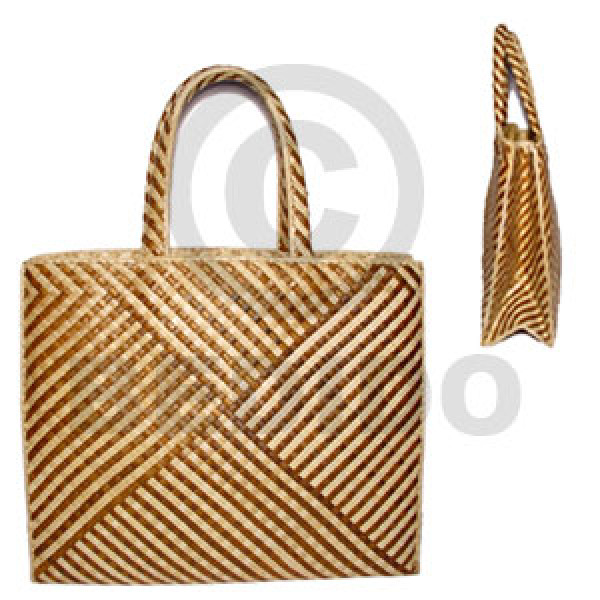 pandan indo stripe bag/ large/ 14 1/2 x 5 1/2 x 11 1/2 in/ handle 6 1/2 in...