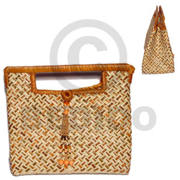 pandan banggay bag/ small/ 8x4x7 in. mahogany tassles accent..