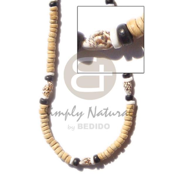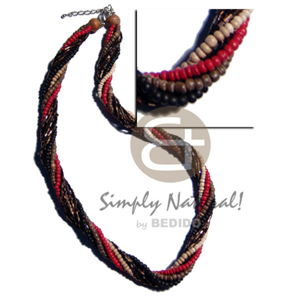 10 rows - 2-3mm black/nat. white/red/nat. brown coconut Pukalet & brown cut glass beads combination ..
