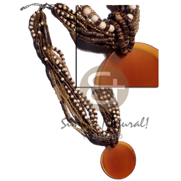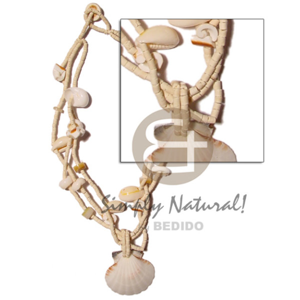 3 layers 2-3mm coconut heishi bleach sigay,moonshell,goldlip heishi & scallo pendant..