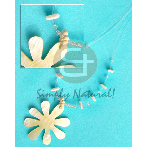 6mm nat. wood beads white rose/troca garlic/acrylic crystals combination 45mmx40mm blacklip in cle..