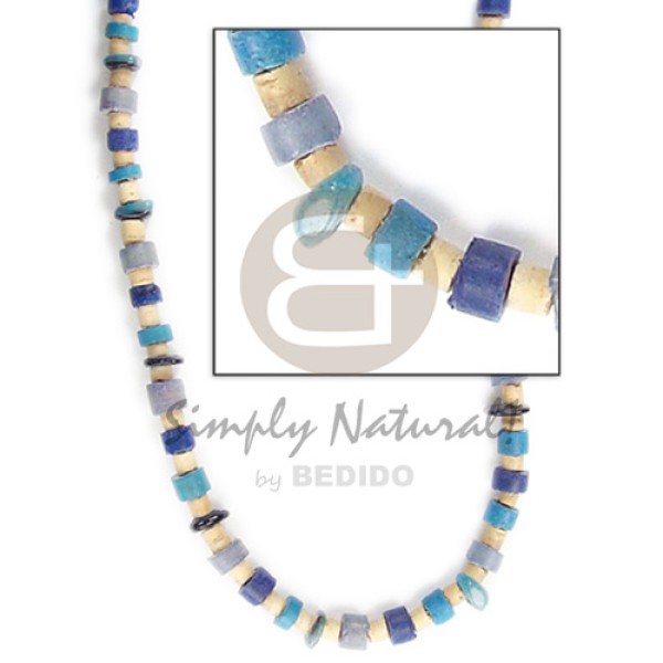 2-3mm c. heishi nat wht 4-5mm coconut Pukalet blue tones combinationnation..