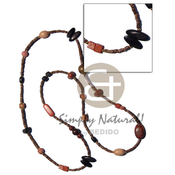 "kalandrakas"- tassled asstd. wood beads per necklace when ordered in wax cord / 32 in..