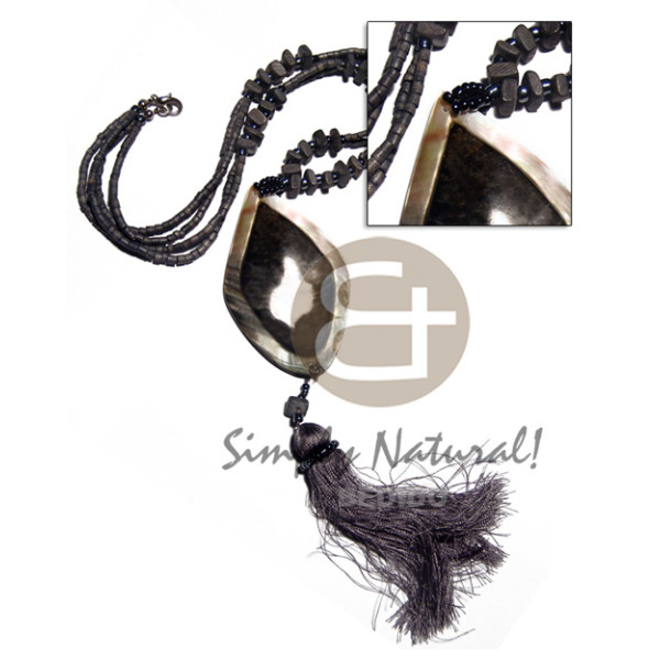 5 rows glass beads, wax cord, black 2-3mm coconut heishi handpainted oval black tab pendant 40mm..