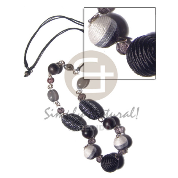 2 rows wax cord 15mm round wood beads, wrapped oval 25mm and 20mm round wood beads metal findings ..