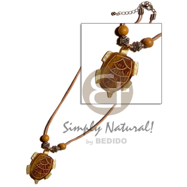 tribal carved 40mmx23mm wooden pendant coconut Pokalet/wood beads accent in double wax cord / 23i..
