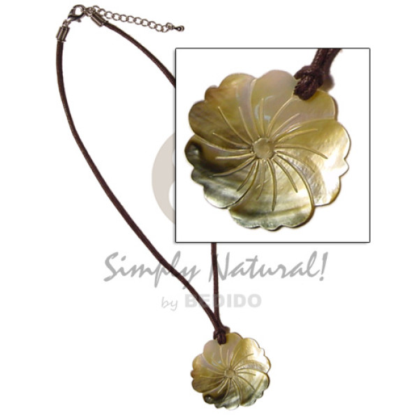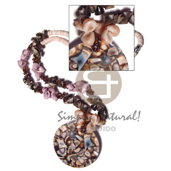 MOP flower pendant / 2-3 heishi nat./ in pukalet white / nassa / white rose..
