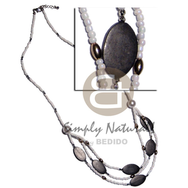 40mm blacktab/MOP yin yang pendant in choker wire shell & wood beads accent..