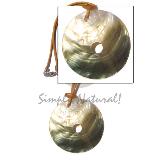 rectangular 40mmx35mm nat. hammershell pendant in leather thong wood beads accent..