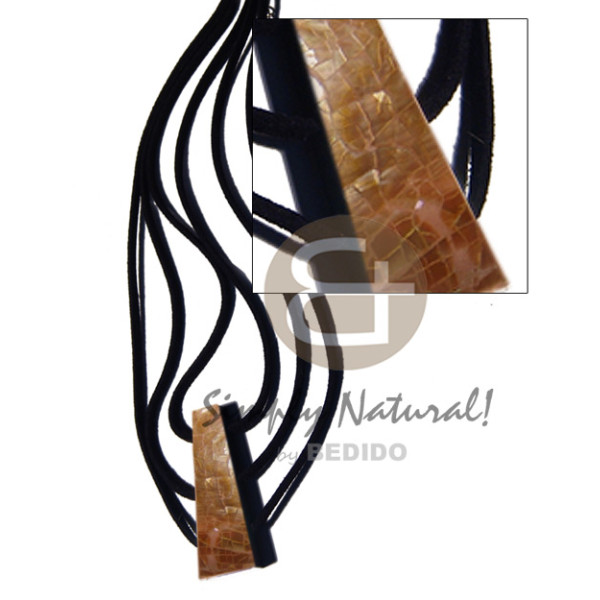 50mmx18mm triangular laminated cracking brownlip pendant backing on 3 rows leather thong..