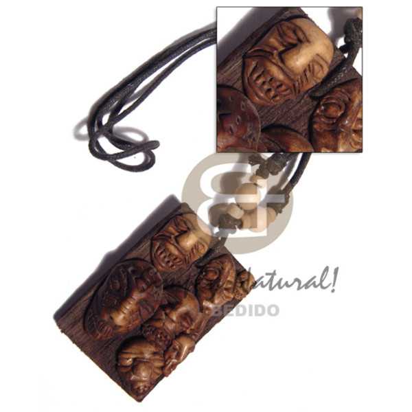clay tribal mask on 60mmx40mm rectangular driftwood /adjustable black wax cord /tribal clay series..