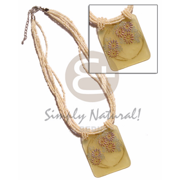 6 rows crème colored multi layered glass beads rectangular 55x50mm MOP handpainted/embossed pendant..