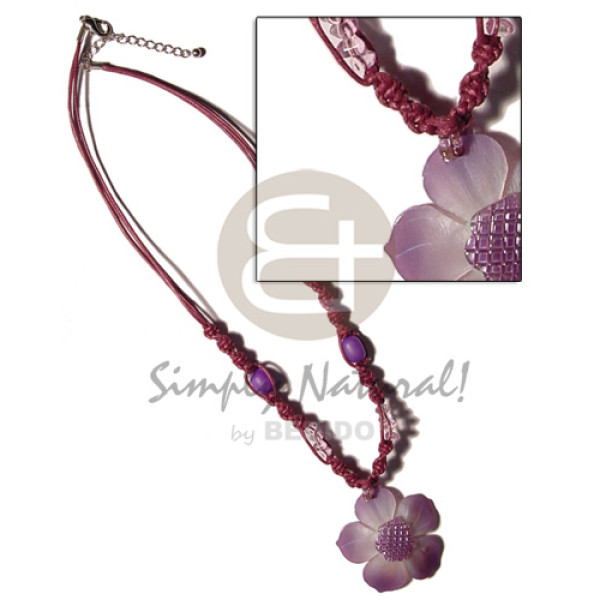 2 layers knotted wax cord puka shells accent & 45mm handpainted oval capiz..