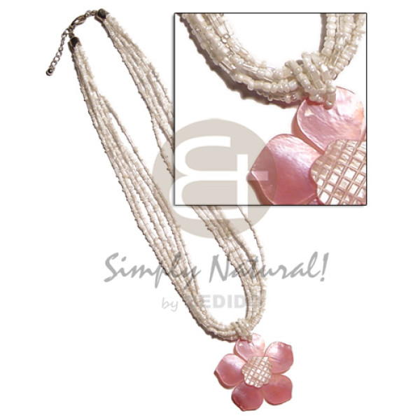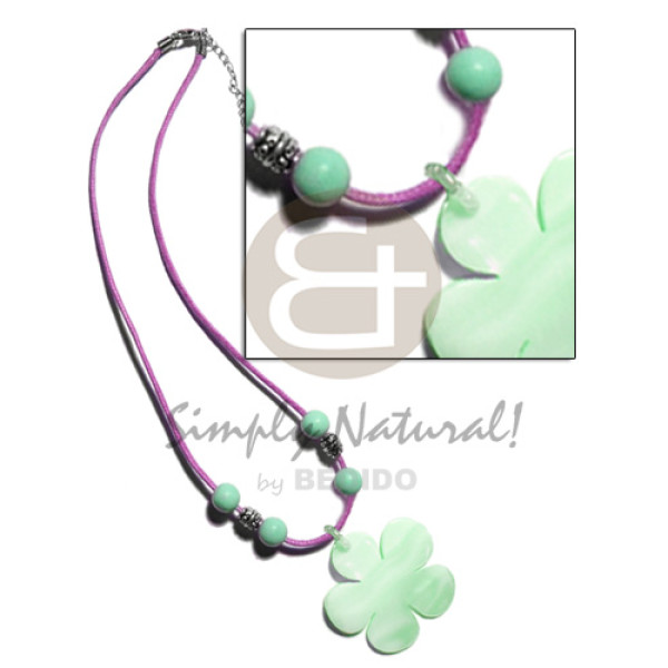 graduated pink tones hammershell flower pendant in pink wax cord..