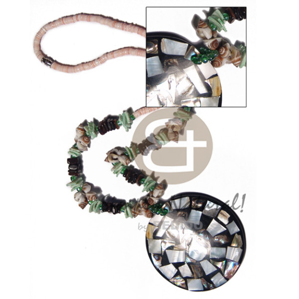 handpainted 75mmx35mm souvenir kabibe pendant on 2-3mm bleached coconut heishi & pokalet..