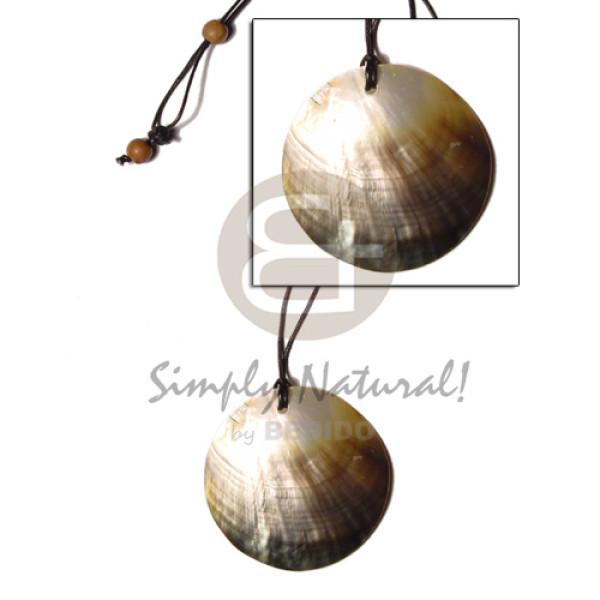 2 layers knotted wax cord puka shells accent & 45mm handpainted oval capiz..