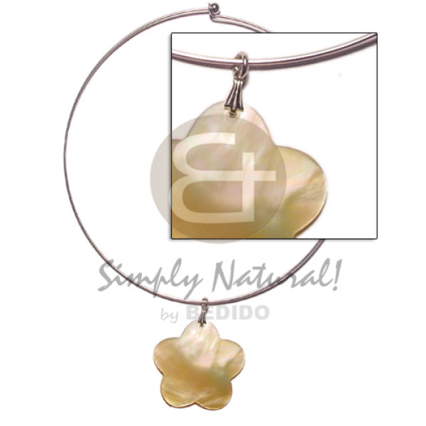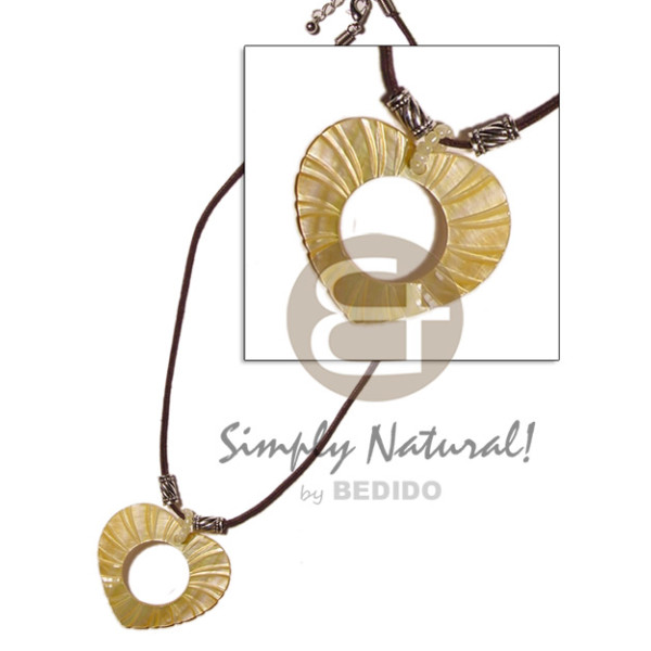 white macrame buri & shells accent and 45mm graduated yellow hammershell flower groove pendant..