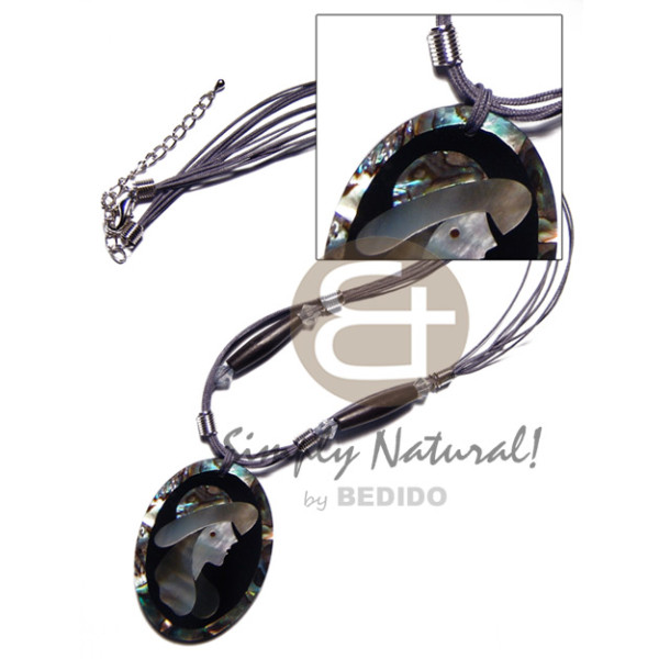 6 rows gray cord football wood beads accent and 50mmx38mm oval pendant /elegant hat lady delicately..