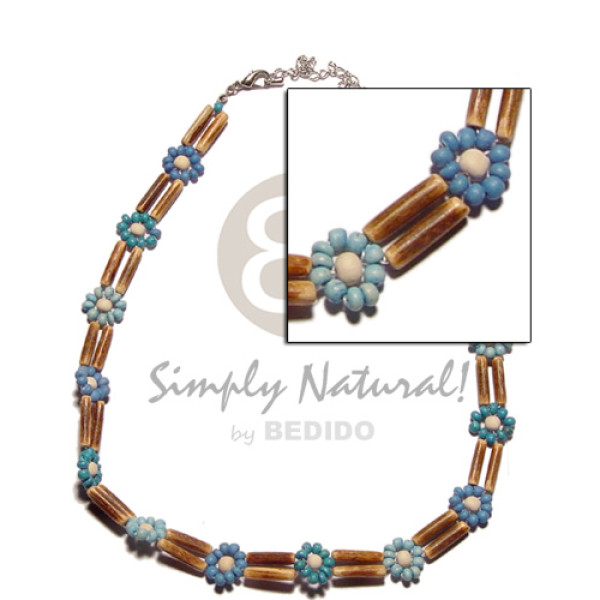 2 layer knotted aqua blue wax cord buri & shells accent and graduated aqua blue hammershell flower..