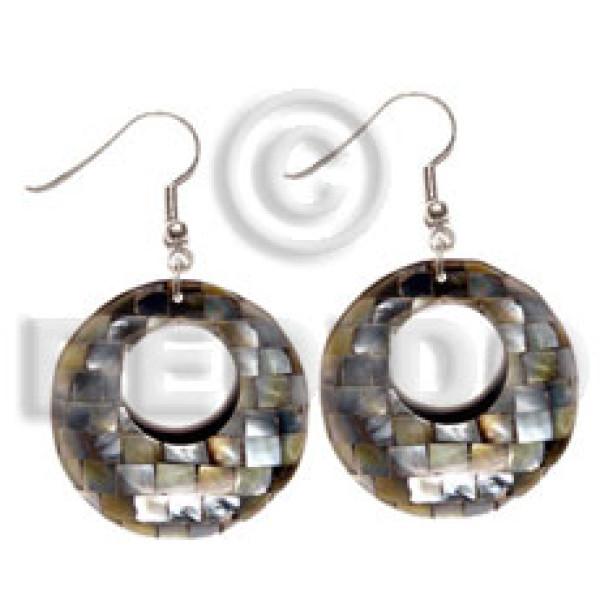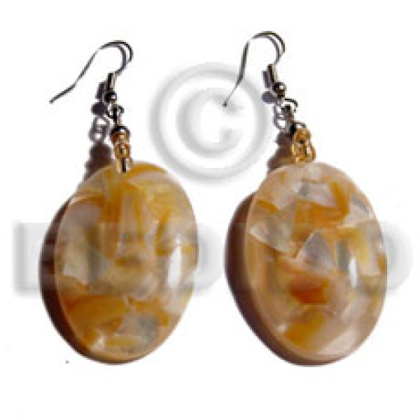 dangling flat 35mm black round resin top center 10mm hole and laminated kabibe chips..