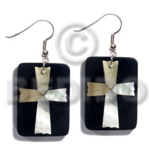 dangling 40mmx27mm rectangular black resin laminated MOP cross..