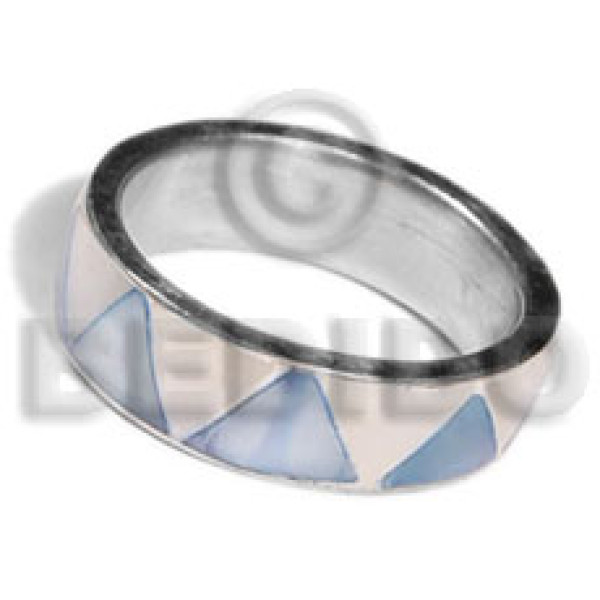 inlaid hammershell in stainless 10mm metal ring/ nat. white and light blue combination..
