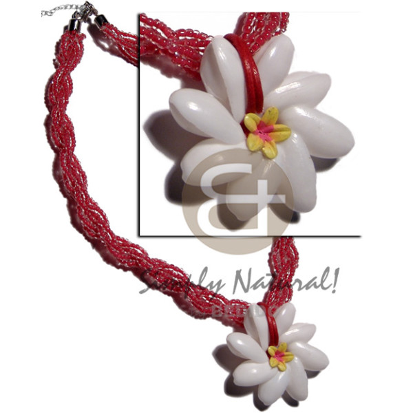 kukui seed / white flower design on 2 sides / 16 pcs. per strand..