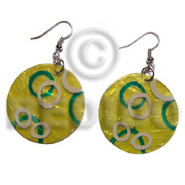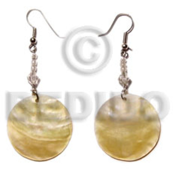 dangling flat 35mm black round resin top center 10mm hole and laminated brownlip chips..