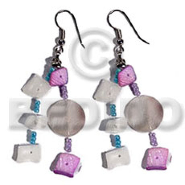 dangling double round 25mm blue/wine capiz shell 15mm capiz lavender flower..