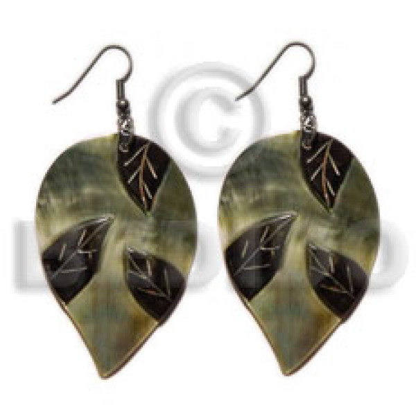 dangling inverted teardrop 35mm blacklip embossed skin leaf..