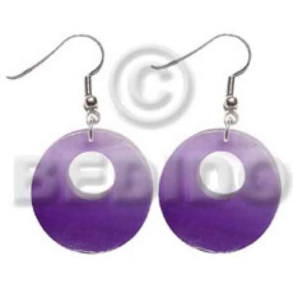 dangling 25mm round kabibe shell pendant big 10mm top center hole / graduated purple..