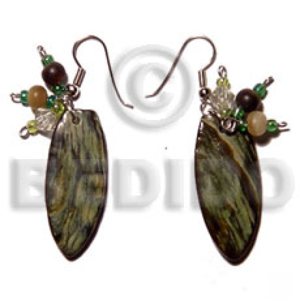 dangling 35mmx15mm surfboard blacklip skin looped acrylic crystals/glass beads accent..