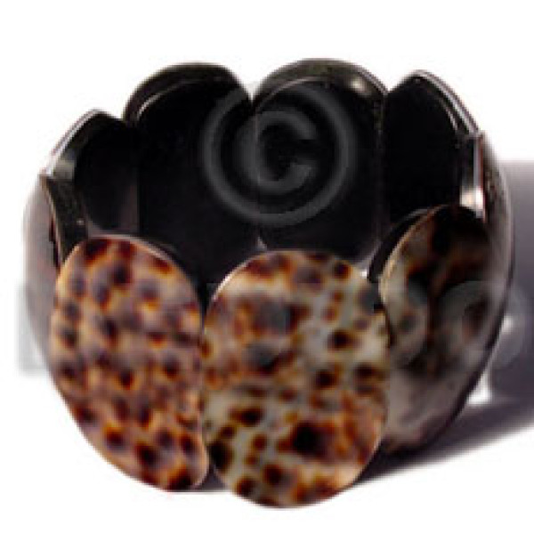 35mmx25mm oval black resin ( 6mm thickness ) laminated light green capiz shell elastic bangle..