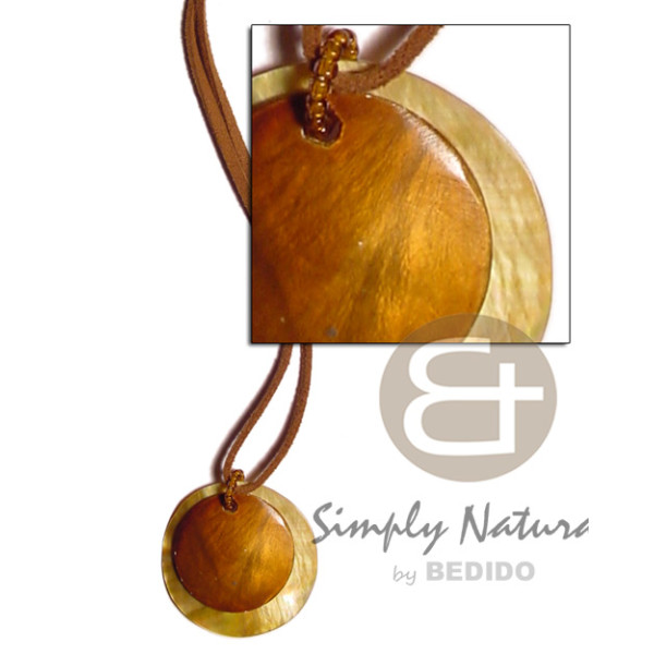4 r0ws dark brown wax cord 16 pcs. 40mmx25mm laminated eyelet capiz in dark amber tones / 34in..