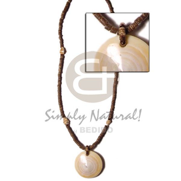 2-3mm coconut heishi brown/nassa alt. cunos pendant..
