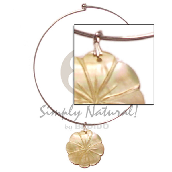 3 rows white knotted wax cord buri seeds combination and 45mm nat. white hammershell flower groove..