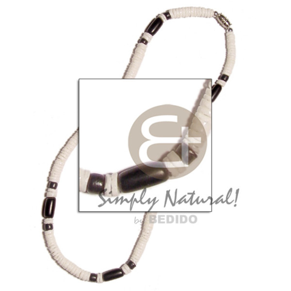 3 layer black 2-3mm coconut heishi blacklip shell tusks & wood beads accent..