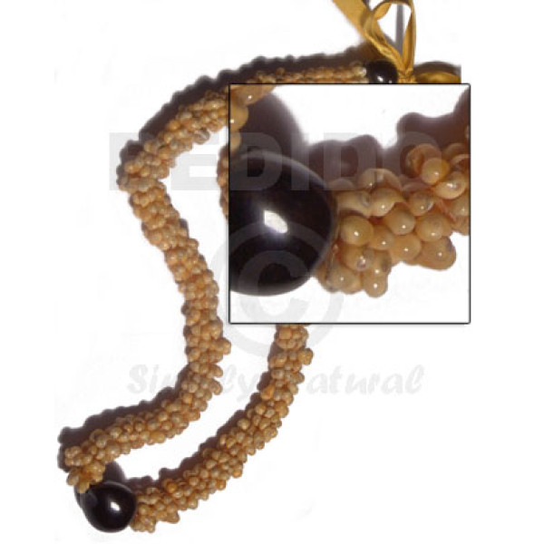 yellow mongo shell rings brown kukui nuts combination / 28in in matching adjustable ribbon the ma..