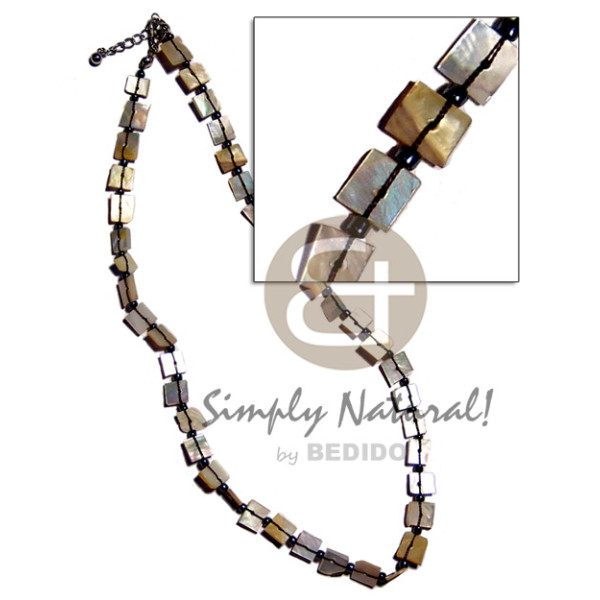 50mmx20mm inlaid back to back MOP & black resin pendant combination in choker wire 2-3 heishi black ..