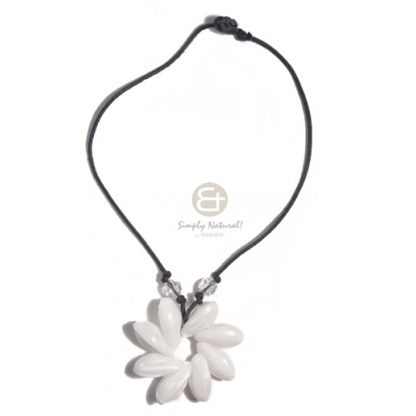 braided black satin cord choker 3 pcs. 45mm kabibe flower shells and white/green/yellow mongo shel..