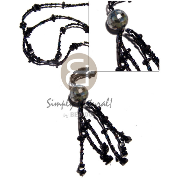 1 layers blackcut and glass beads tassled 20m round blacklip blocking and blacktab nuggets and 4-5m..